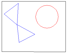 Az utolsó objektumunk is region tipusú az érdekessége, hogy az AutoCAD tömb átalakításával készült s mivel a tömb két háromszögből állt ez is két poligont fog tartalmazni. Másik említendő körülmény, hogy a kék szín, mivel úgy nyerjük, hogy a legalacsonyabb helyértékű azaz a jobboldali byte-ot feltöltjük egyesekkel a többit pedig nullákkal tizes számrendszerbe történő átalakítás után 255 értékkel fejezhető ki ebben a rendszerben.